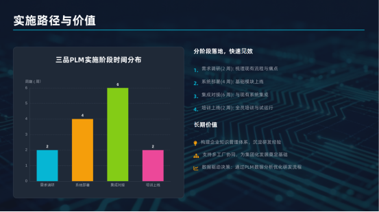 ●案例佐證:(三品軟件深圳區域項目案例)深圳某智能硬件公司應用三品PLM流程引擎后,圖紙簽審流程從平均5天縮短至2天,工程變更(ECN)處理周期從7天壓縮至3天,項目整體交付周期縮短了25%。