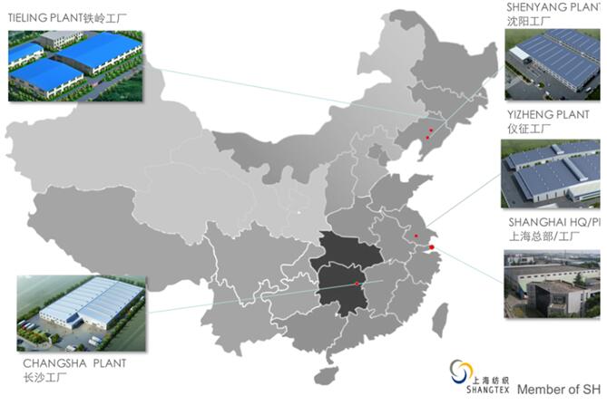 上海汽車地毯總廠有限公司在中國擁有六個直屬工廠和7個合資公司.全國各地共18個工廠。