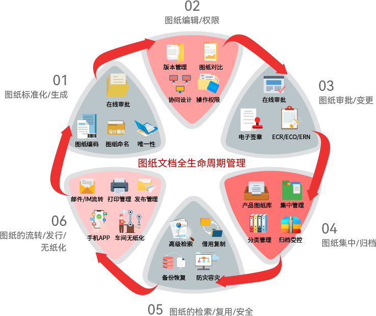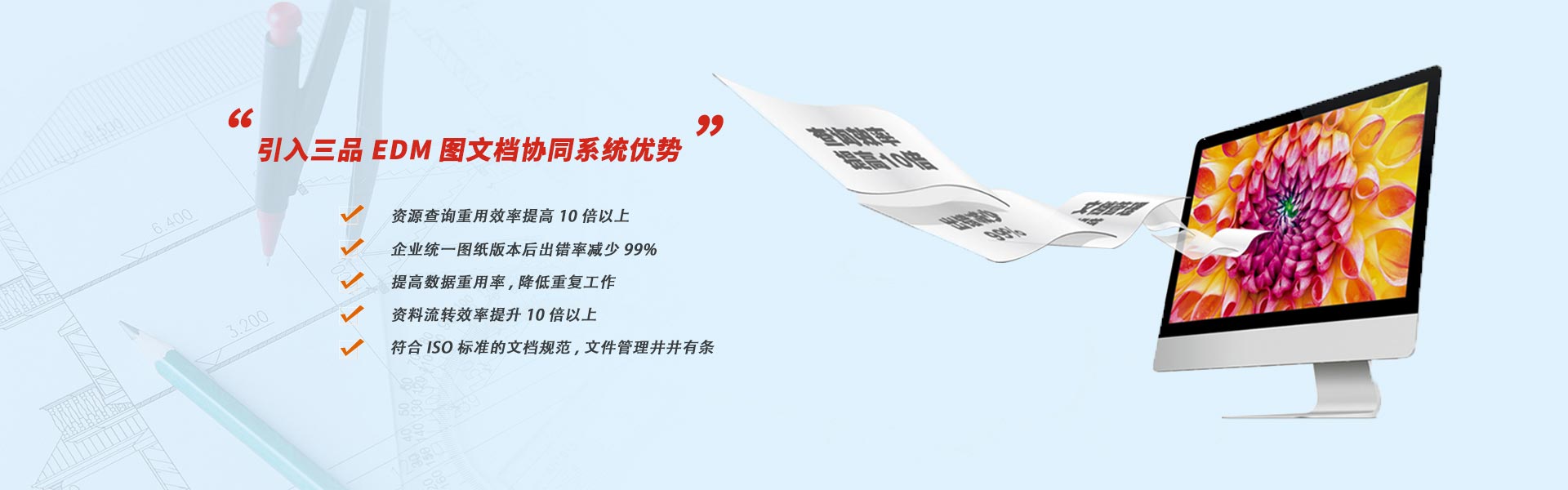 三品EDM企業圖紙文檔管理平臺旨在為企業提供一套完善的圖紙管理及協同辦公平臺,涵蓋了設計研發涉及的圖文檔管理、編碼管理、權限管理、在線審批、變更管理、無紙化、數據安全管理及協同辦公等內容。強大的系統過程管理功能徹底終結圖紙等技術資料管理混亂的現狀,實現圖紙文檔的全生命周期管理,讓企業組織的圖紙文檔管理“井井有條”。簡單易用的協同功能幫助企事業組織實現更高效率的協同工作。